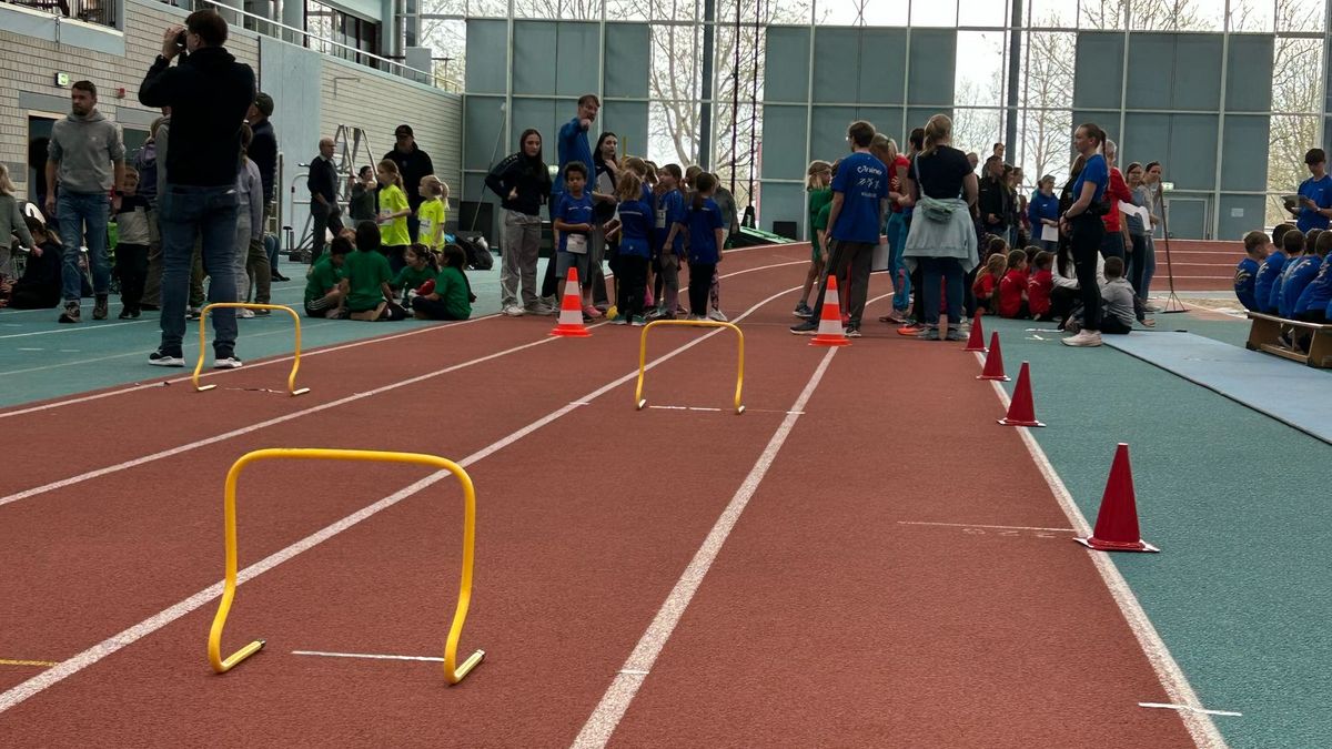 Nach der Begrüßung aller anwesenden Teilnehmer:innen und Unterstützer:innen wurden die teilnehmenden Teams vorgestellt. Gemeinsam wärmten sich alle mit dem Spiel “Löwenjagd“ auf, bei dem auch JuLe, das Maskottchen der Jugendleichtathletik, begeistert mitmachte und für gute Stimmung sorgte.