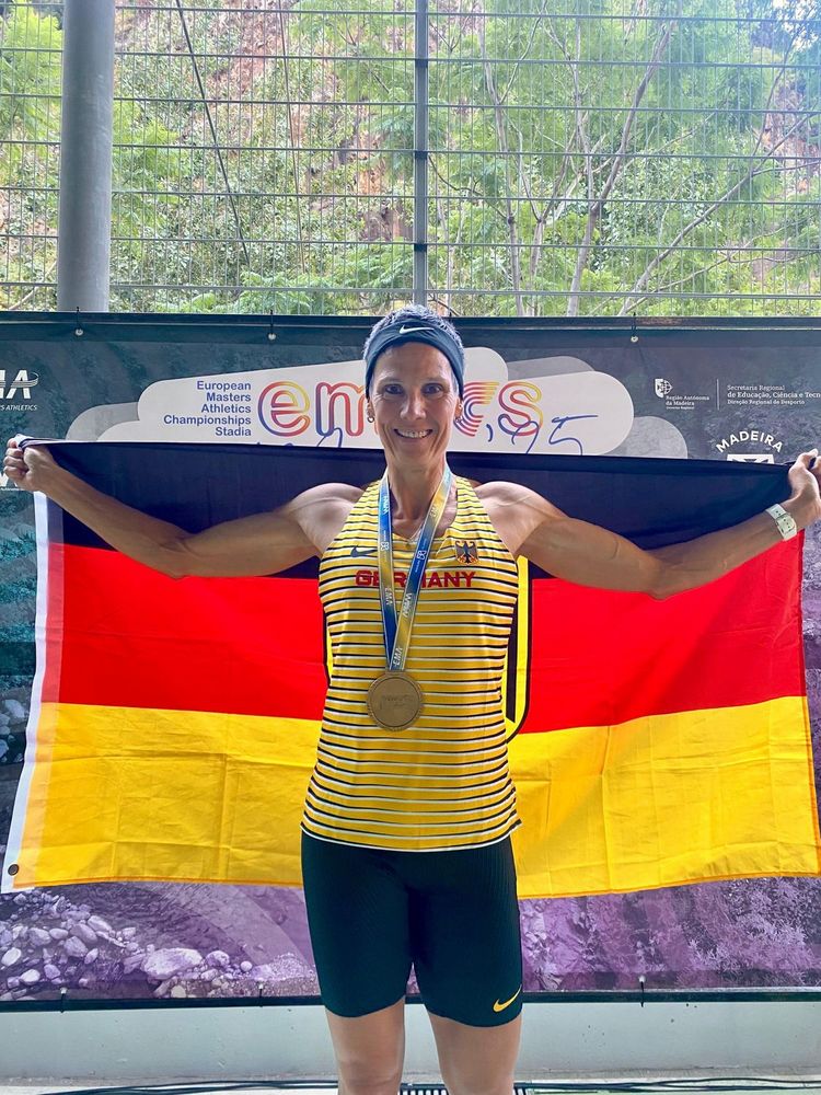 2 mal Gold mit der 4 x 100 m und 4 x 400 m mixed-Staffel und einmal Silber mit der 4x400m Staffel für Dana Prada (LG OVAG Friedberg-Fauerbach) in der W45.