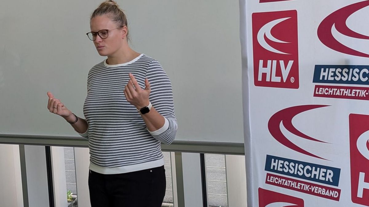 Mit dem erstmalig disziplinspezifischen HLV-Leistungssportkongress waren wir wieder im sportwissenschaftliichen Institut der Goethe-Universität Frankfurt zu Gast. Begrüßt wurden die rund wurfbegeisterten 130 Teilnehmer:innen vom Abteilungsleiter des sportwissenschaftlichen Instituts der Universität, Prof. Dr. Christopher Heim, HLV-Präsident Klaus Schuder, HLV-Vizepräsident Sportentwicklung Martin Rumpf, HLV-Geschäftsführer Sport Carsten Ebert und Manuel Odey, Fachwart Lehre im HLV und Fachleiter Leichtathletik bei der Goethe-Universität. Anschließend startete der erste spannende Vortrag des Tages von der ehemaligen Vize-Europameisterin und Olympionikin im Kugelstoßen Sara Gambetta. Sie schilderte ihren Weg von einer international erfolgreichen Mehrkämpferin in der Jugend zur ebenso erfolgreichen Kugelstoßerin im Erwachsenenalter. Vor allem wurden die frühe Spezialisierung in der Leichathletik und ihre Eindrücke als Leistungssportlerin thematisiert. Anschließend folgte ein spannnender Vortrag vom HLV-Landestrainer Wurf Martin Rumpf über Würfe im Kindesalter. Er wollte die Anwesenden dazu ermutigen, mit den Kindern und Jugendlichen rauszugehen und zu werfen. Seinen Vortrag beendete er mit dem Fazit: "Geht's raus und schmeißt's." Vor der Mittagspause hielt HLV-Cheftrainer Wurf, Bastian Otto, einen praxisorientierten Vortrag zu Hebetechniken im Krafttraining für Werfer:innen. Er ging auf verschiedene Kraftübungen ein, demonstrierte die korrekte Ausführung und gab wichtige Hinweise zu den verschiedenen Techniken. Nach der Mittagspause, die sehr intensiv zum Austausch untereinander genutzt wurde, folgte ein weiterer Vortrag vom Bundestrainer Diskuswurf, Markus Münch, zum Thema "Haben Zubringerleistungen aus dem Grundlagentraining eine Bedeutung? Erklärungen am Beispiel des weiblichen Diskuswurfs". Inhaltlich präsentierte er Studienergebnisse aus seiner Diplom-Trainerarbeit, welche den Einfluss von Zubringerleistungen auf die Wurfweite im Frauen-Diskus empirisch untersucht.
